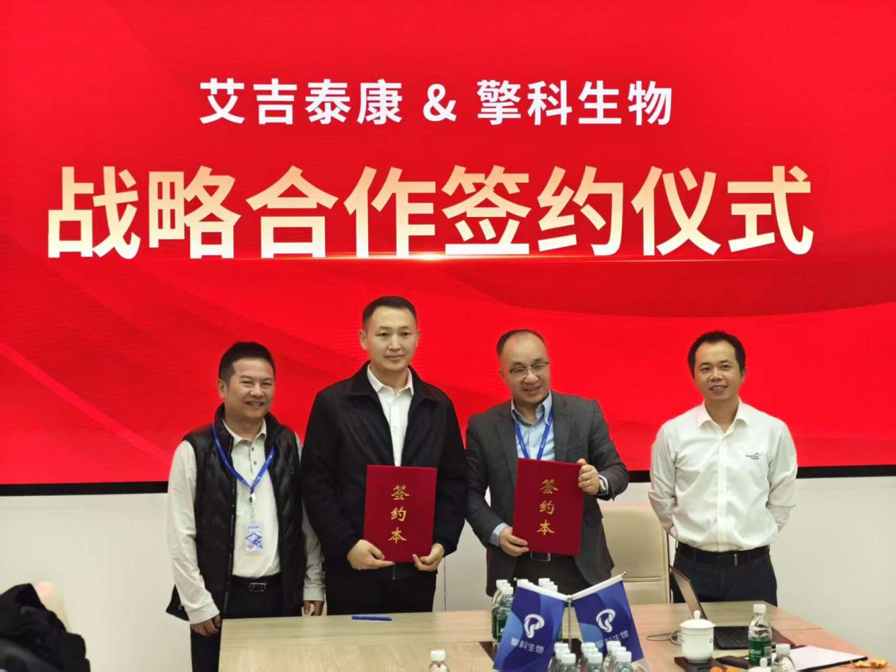 近日,北京擎科生物科技股份有限公司(以下简称“擎科生物”)与艾吉泰康生物科技(北京)有限公司(以下简称“艾吉泰康”)在擎科生物北京总部隆重举行战略合作协议签约仪式。双方本着“优势互补、协同发展”的核心原则,正式建立战略合作伙伴关系,旨在聚焦合成生物学及相关技术领域,携手推动技术创新、产品升级与市场拓展,实现资源联动、互利共赢,为行业高质量发展注入新动能。